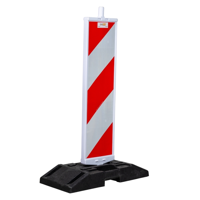 Fabriquée en polyéthylène haute densité recyclé, cette balise d’alignement est dotée de bandes diagonales rouges et blanches orientées à gauche et à droite, assurant une lisibilité optimale dans les deux sens de circulation. Sa surface rétro-réfléchissante de classe 2 garantit une visibilité renforcée, de jour comme de nuit, même en conditions météorologiques dégradées.