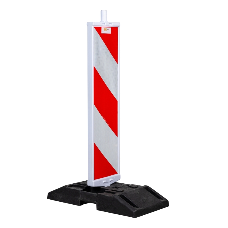 Balise conçue en polyéthylène haute densité, elle est durable et facile à manipuler. Pourvue d'une signilasation efficace dans les deux sens grâce à ces bandes rétro-réfléchissantes Classe 2 sur les deux faces de la balise. Elle se fixe facilement sur le socle Plastobloc de 28 kg (vendu séparément) grâce à un simple emboîtage. Afin de renforcer la visibilité nocturne, cette balise d'alignement K5c est compatible avec une lampe de chantier temporaire (en option).