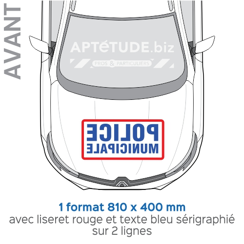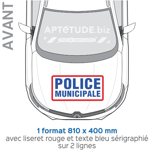 1 format texte "POLICE MUNICIPALE" 810 x 400 mm sur le capot