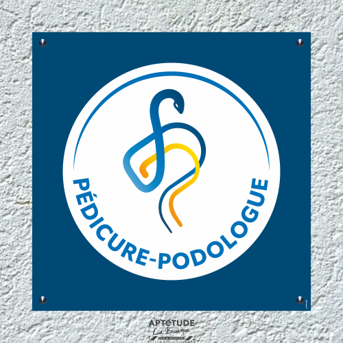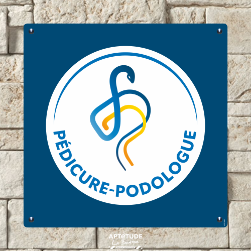 Plaque pédicure-podologue avec insigne original sur fond bleu